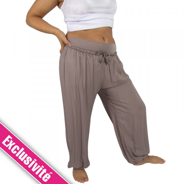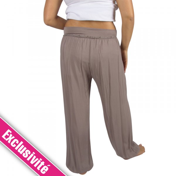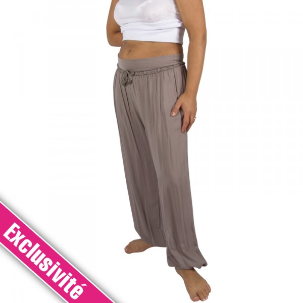 Un pantalon à la coupe très tendance agréable à porter grâce à sa matière souple. Réglage par un cordon.