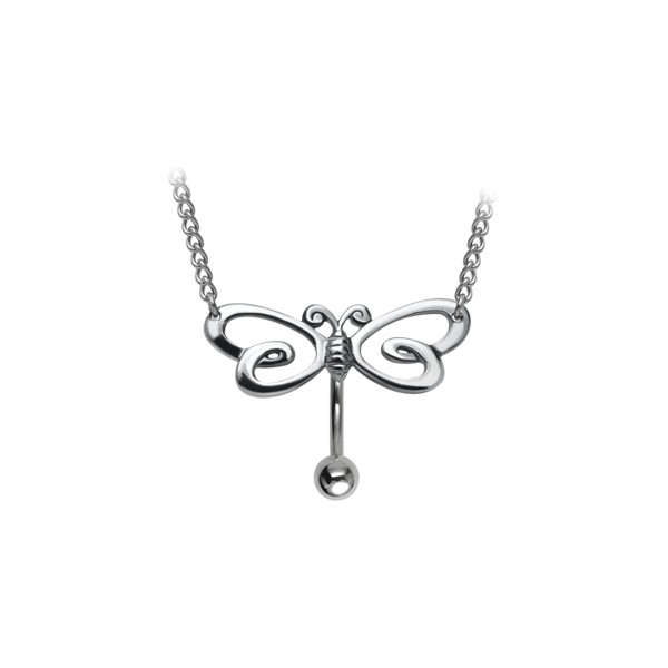 Piercing de nombril en acier 316L et chaine de taille ajustable en acier 316L. Motif papillon.
